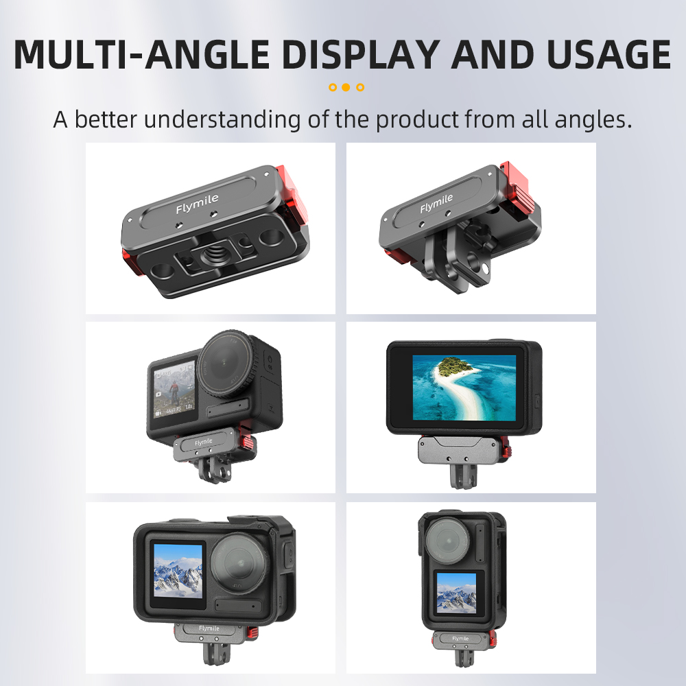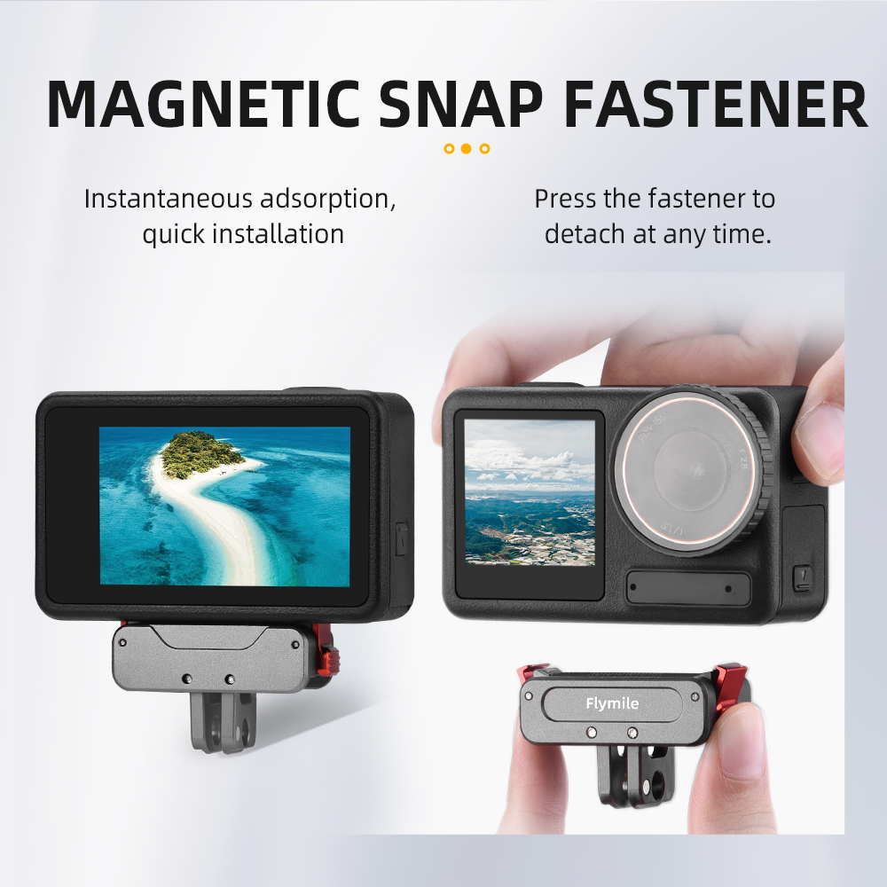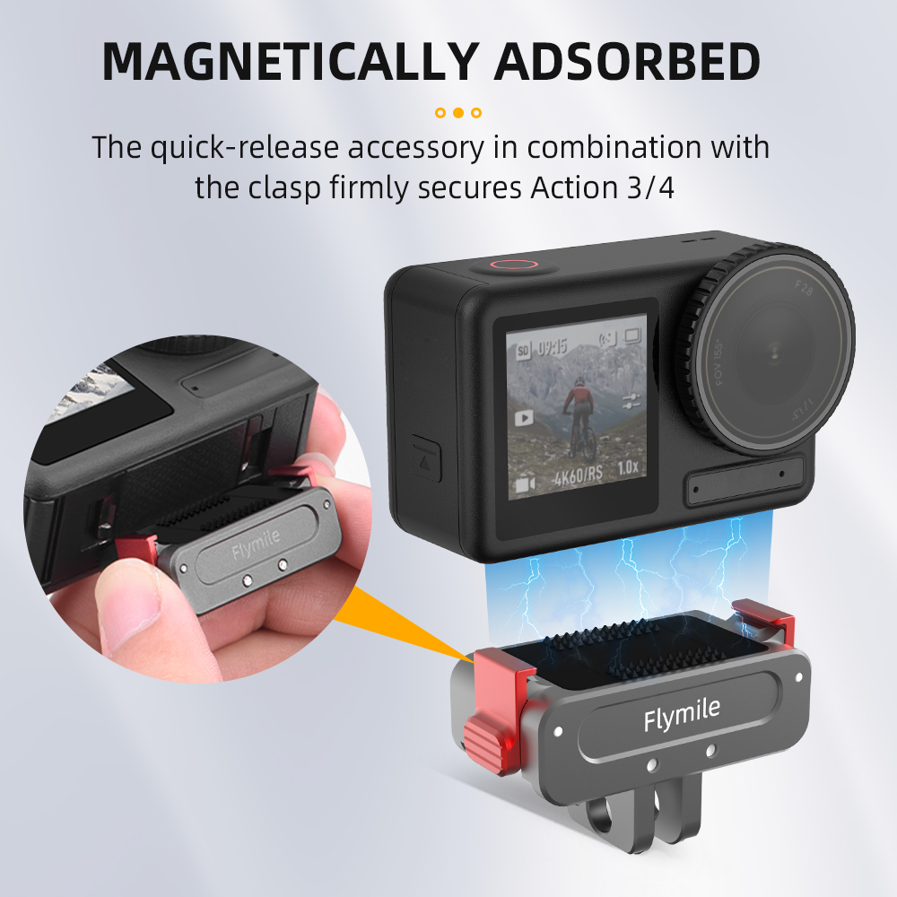 Experience the ultimate convenience with our magnetic quick-release adapter. Weighing just 30g, it securely locks your camera for trips, cycles, or car shots. Featuring a universal 1/4" screw, it's your go-to mount for the DJI OSMO Nano/360/Action5 4 3