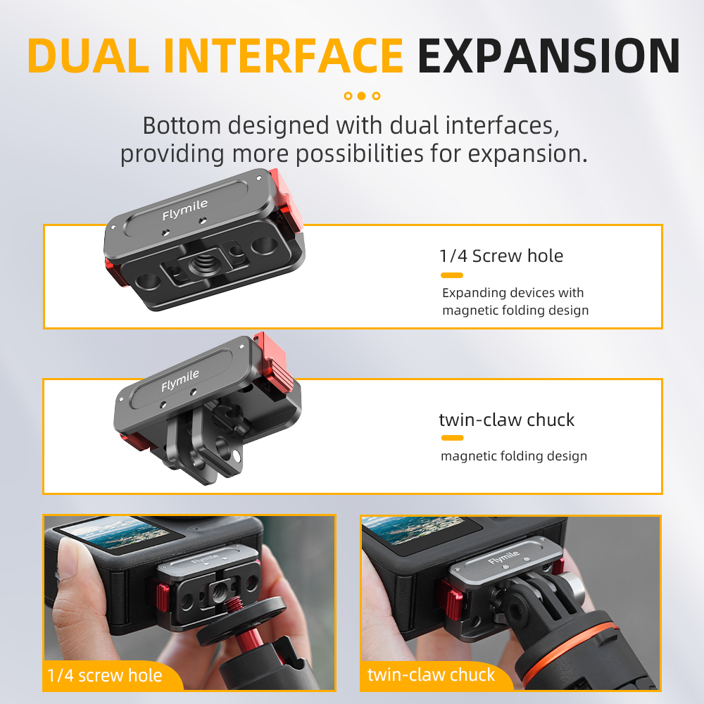 For DJI Action 5 Pro Magnetic Adapter Foldable Quick-release Plate 1/4 Thread Universal Port For DJI OSMO Nano/360/Action5 4 3